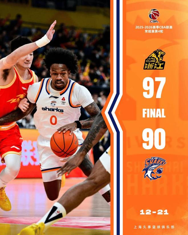 - 2025年12月21日 廣廈力克上海 布朗41分 胡金秋18分 張鎮麟11+6